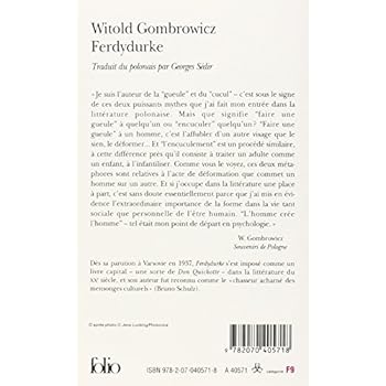 «Je suis l'auteur de la "gueule" et du "cucul" - c'est sous le signe de ces deux puissants mythes que j'ai fait mon entrée dans la littérature polonaise. Mais que signifie "faire une gueule" à quelqu'un ou "encuculer" quelqu'un ? "Faire une gueule" à un homme, c'est l'affubler d'un autre visage que le sien, le déformer... Et "l'encuculement" est un procédé similaire, à cette différence près qu'il consiste à traiter un adulte comme un enfant, à l'infantiliser. Comme vous le voyez, ces deux métaphores sont relatives à l'acte de déformation que commet un homme sur un autre. Et si j'occupe dans la littérature une place à part, c'est sans doute essentiellement parce que j'ai mis en évidence l'extraordinaire importance de la forme dans la vie tant sociale que personnelle de l'être humain. "L'homme crée l'homme" - tel était mon point de départ en psychologie.»(W. Gombrowicz, Souvenirs de Pologne.)